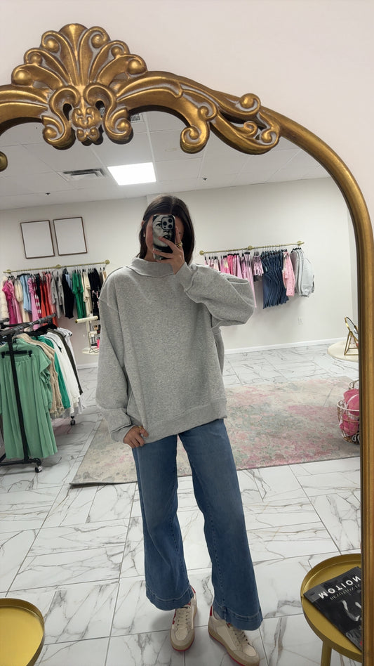 Solid Heather Grey Reversible Mock Neck Sweatshirt