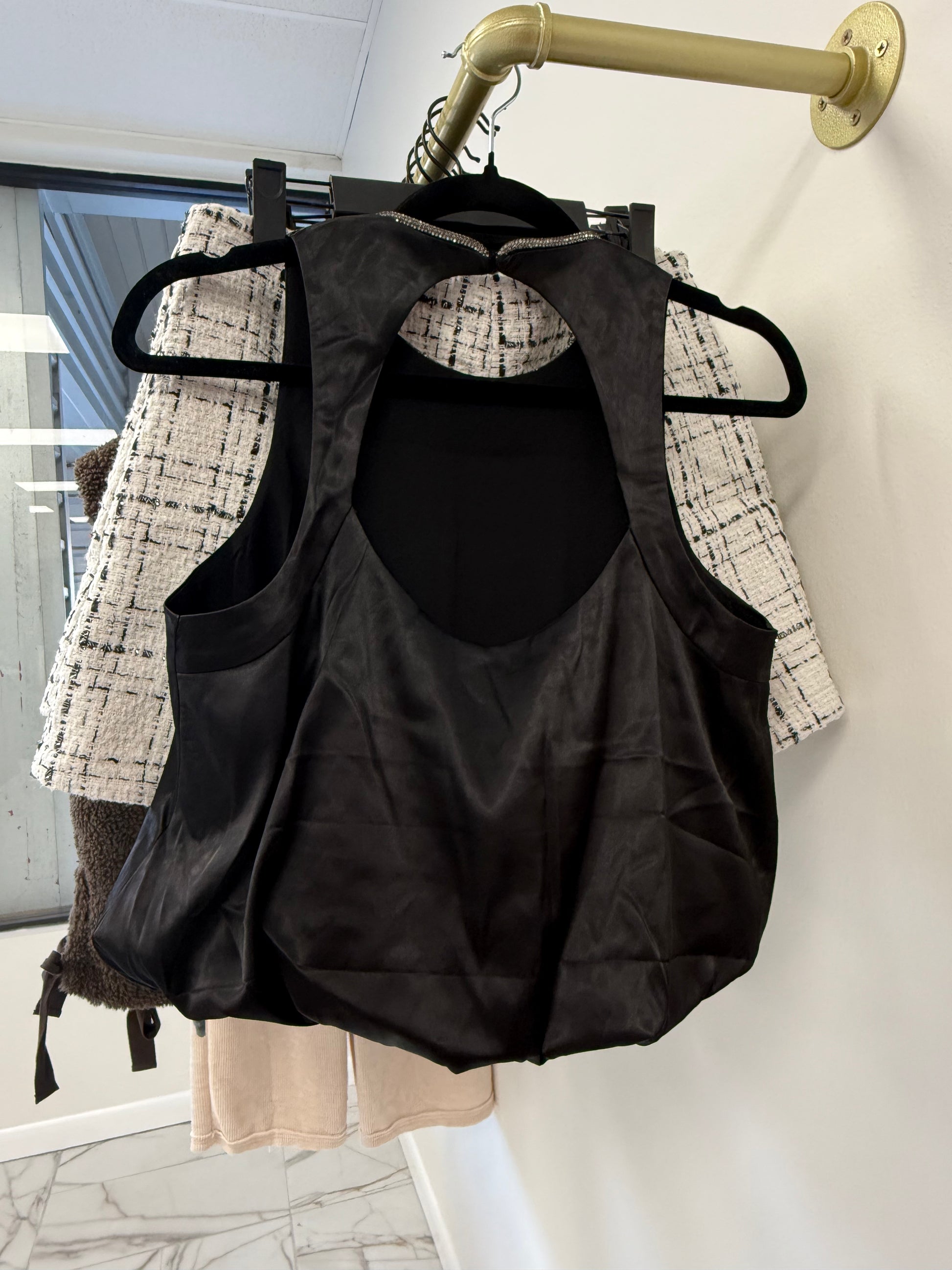 Black Rhinestone Trim Top
